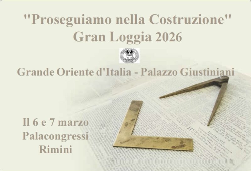 “Proseguiamo nella costruzione” è il titolo scelto per la Gran Loggia 2026 del Grande Oriente d’Italia, che si terrà il 6 e 7 marzo al Palacongressi di Rimini. Un titolo che non è solo uno slogan, ma un vero e proprio invito alla responsabilità, alla riflessione e all’azione collettiva. Esso richiama l’impegno continuo di tutti i massoni ad edificare un futuro condiviso, fondato su principi etici solidi, visione comune e senso di responsabilità.