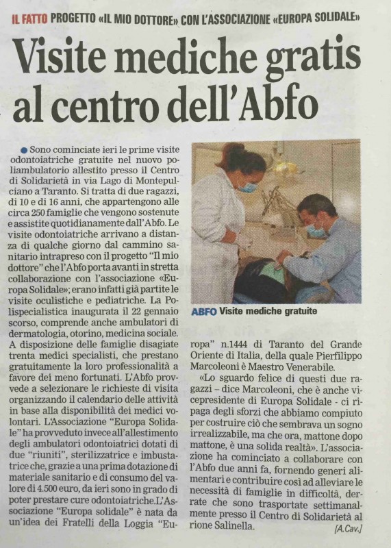 Visite mediche gratis al centro dell’Abfo. Progetto “Il mio dottore” con l’Associazione Europa Solidale – La Gazzetta del Mezzogiorno
